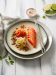 O rețetă plină de savoare care poate fi asociată atât cu un vin alb, corpolent, care are ceva de spus și complimentează peștele, cât și cu un vin roșu, californian, ținut câteva luni bune în butoaie de stejar datorită sosurilor folosite.